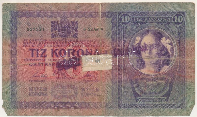 1904. 10K "2977 227321" kiolvashatatlan felülbélyegzéssel T:... https://www.darabanth.com/hu/488-Gyorsarveres/488.0/Numizmatika/Magyar-bankjegyek~500009/1904-10K-2977-227321-kiolvashatatlan-felulbelyegzessel-TVG-G-ragasztott3Cbr-3E-Adamo-K10~II3275476