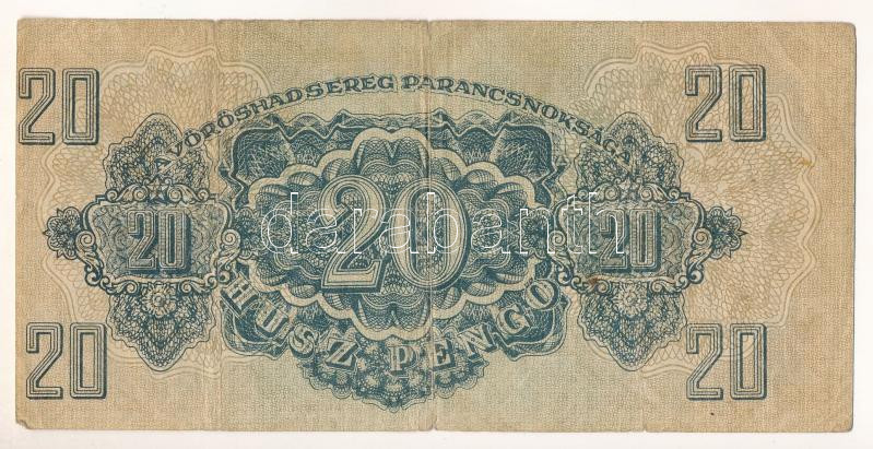 Leírás: 1944. 20P "A Vöröshadsereg Parancsnoksága", "BB 936929" látványosan eltolódott hátlappal T:F-VG, pici szakadás