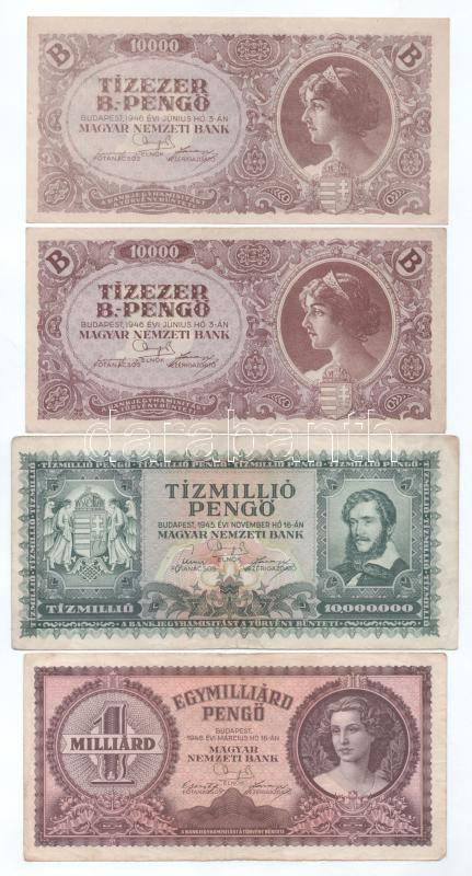 Leírás: 1945. 10.000.000P "001" sorozatszámmal + 1946. 1.000.000.000P "001" sorozatszámmal + 10.000BP (2xklf, halovány + sima) T:F
