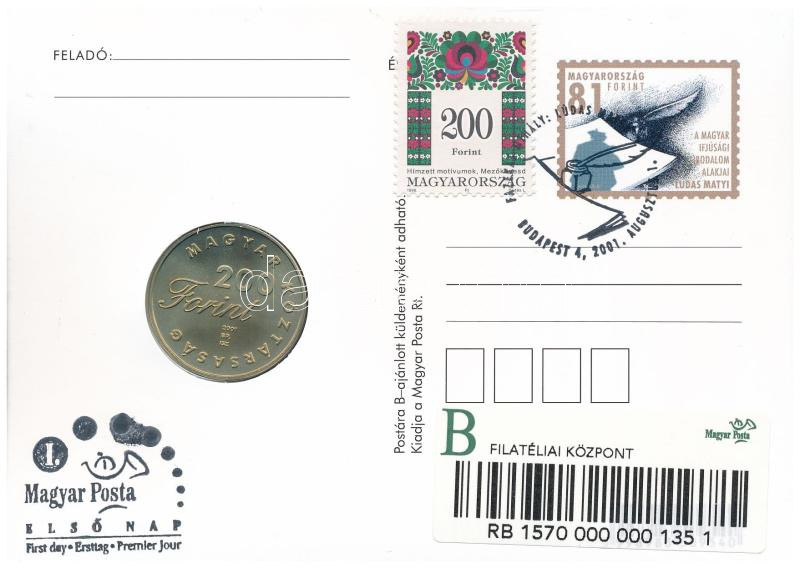 2001. 200Ft "Fazekas Mihály: Lúdas Matyi" felbélyegzett érmé... https://www.darabanth.com/hu/488-Gyorsarveres/488.0/Numizmatika/Magyar-es-magyar-verdejelu-fem-es-ezustpenzek~500010/2001-200Ft-3Cem3EFazekas-Mihaly-Ludas-Matyi3Cem3E-felbelyegzett-ermes-levelezolapon-elso-na~II3275857
