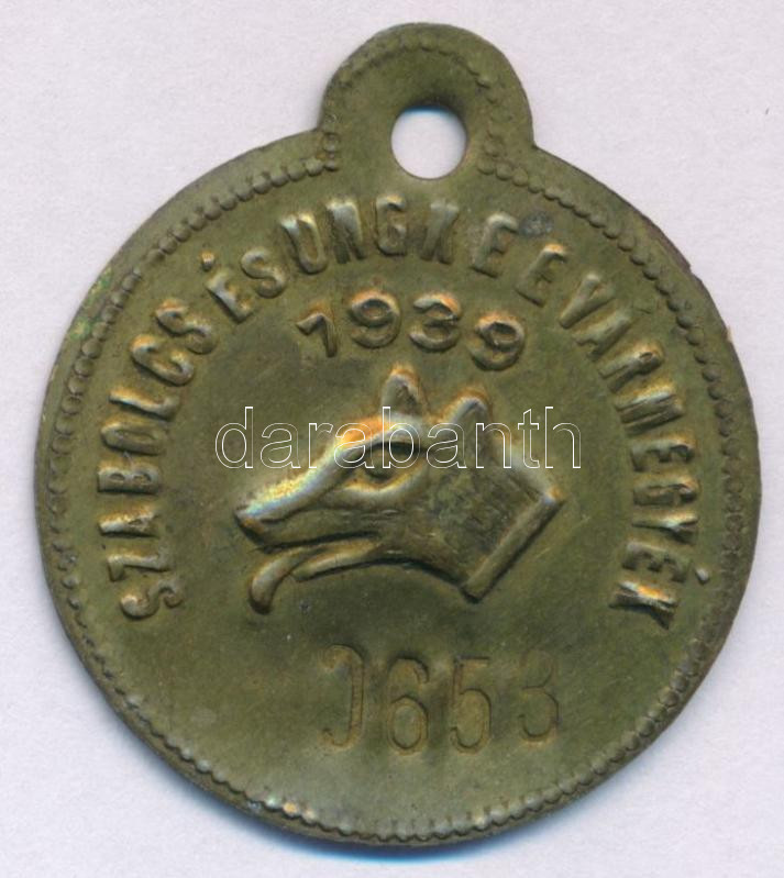 Leírás: 1939. "Szabolcs és Ung k.e.e. vármegyék" Cu ebadójegy / kutyabárca, "0653" sorszámmal (29x33mm) T:XF, kis patina