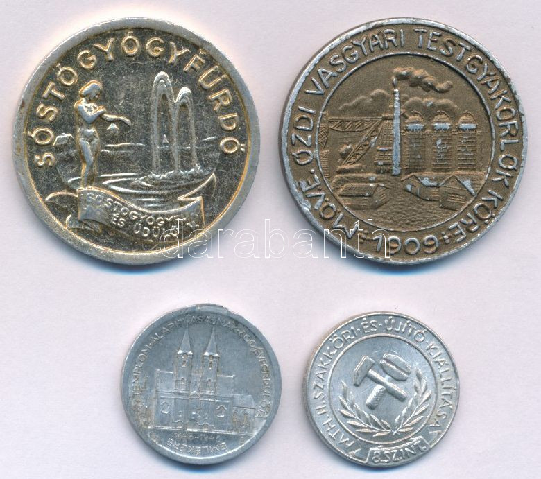 4db-os vegyes Al zseton / emlékérem tétel, közte DN(~1970) "MTH. II. Szakköri és Újító Kiállítása - 8.sz.int." egyoldalas Al emlékérem (19mm), stb. T:VF