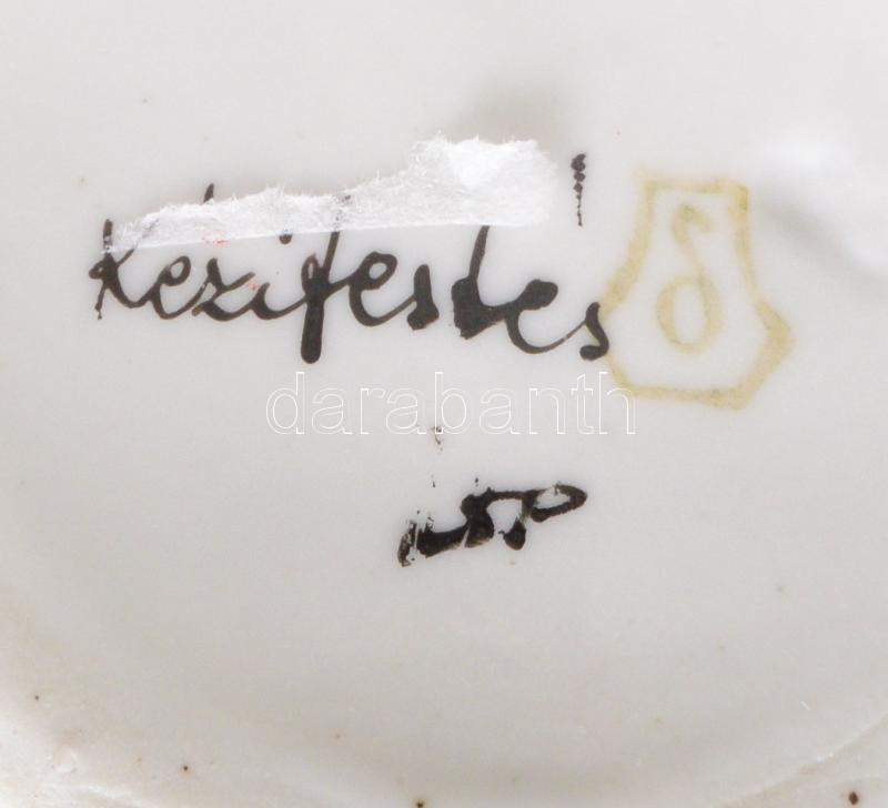 Leírás: Drasche halacska a csigaháznál, kézzel festett, apró kopásnyomokkal, jelzett, m: 15,5 cm