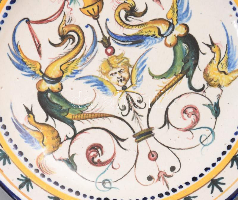 Tálka Olaszország XIX. sz. ónmázas fajansz, figurális kézi festéssel, ... https://www.darabanth.com/hu/488-Gyorsarveres/488.0/Porcelan-keramia-uveg/Porcelan~6/Talka-Olaszorszag-XIX-sz-onmazas-fajansz-figuralis-kezi-festessel-aljan-kek-jelzessel~II3339783