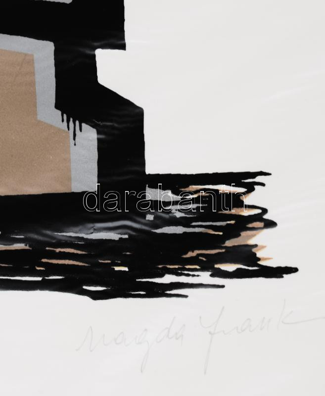 Leírás: Frank Magda (1914-1997): Geometrikus kompozíció. Szitanyomat, papír, jelzett, számozott (6/40), Lapméret 50x35 cm
