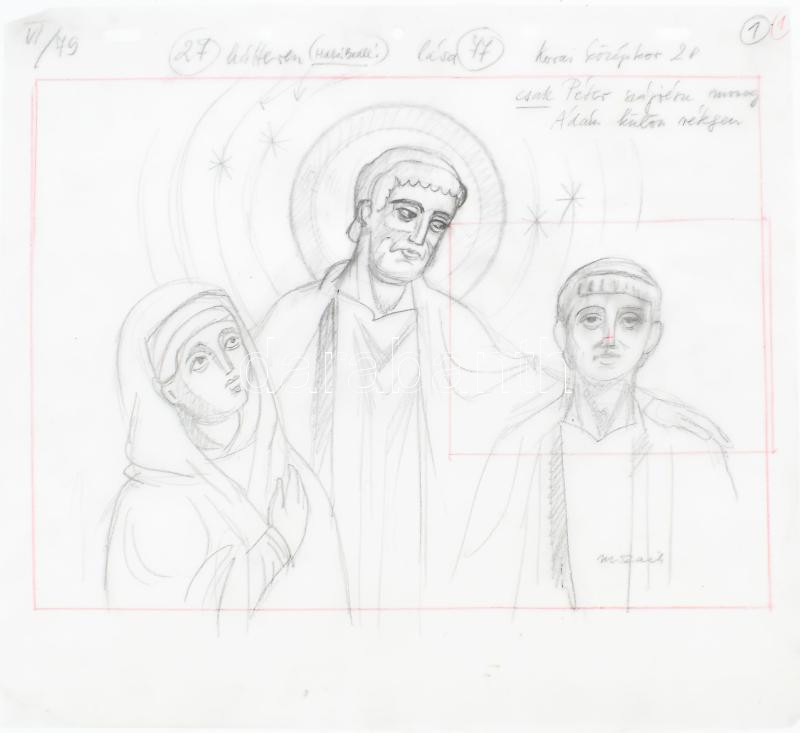 Jankovics Marcell (1941-2021): Jelenet Az ember tragédiája c. 2011-es animációs filmből. JM eredeti rajza autográf feljegyzésével. Ceruza, pausz. 33x30 cm