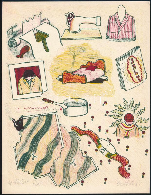 Leírás: René Bertholo (1935-2005): Kavalkád (cím nélkül), 1999. Litográfia, papír, jelzett. Művészpéldány ep. d'artiste 7/12 számozással. 27x21 cm