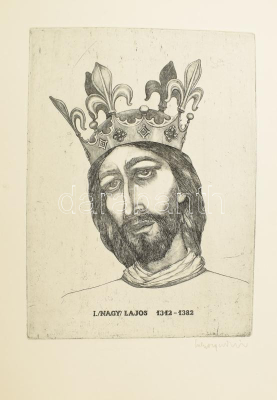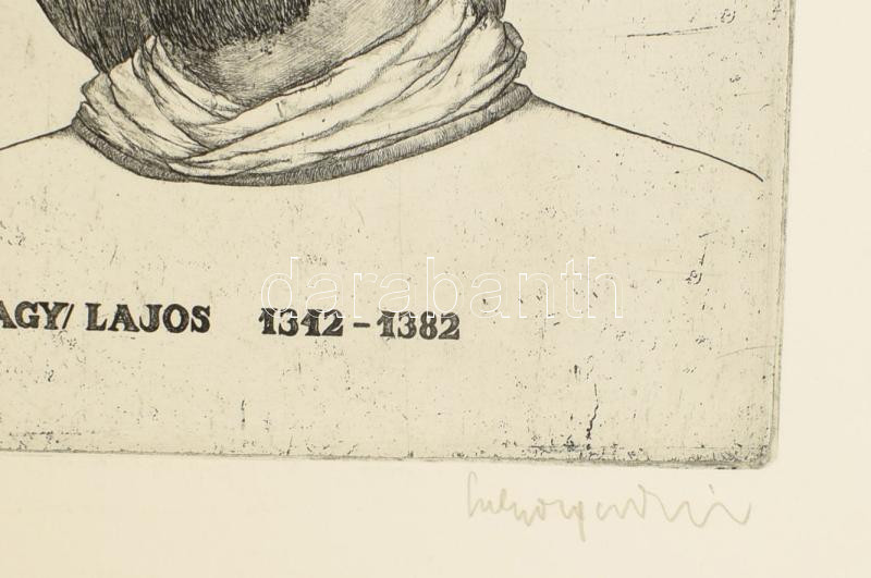 Sulyok Gabriella (1939-): I. (Nagy) Lajos király (1342-1382) portréja.... https://www.darabanth.com/hu/489-Gyorsarveres/489.0/Festmenyek-es-grafikak/Festmenyek-es-grafikak~500001/Sulyok-Gabriella-1939-I-Nagy-Lajos-kiraly-1342-1382-portreja-Rezkarc-papir-Jelzett-~II3299653