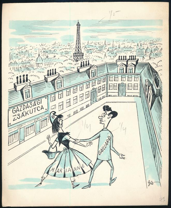 Szegő Gizi (1902-1985), 2 db karikatúra: "Ember és természet" és "Tehetségtelen vezető". Tus, akvarell, papír, mindkettő jelzett és hátoldalán "Ludas Matyi Szerkesztősége" bélyegzővel. 25x19 cm és 25x21 cm