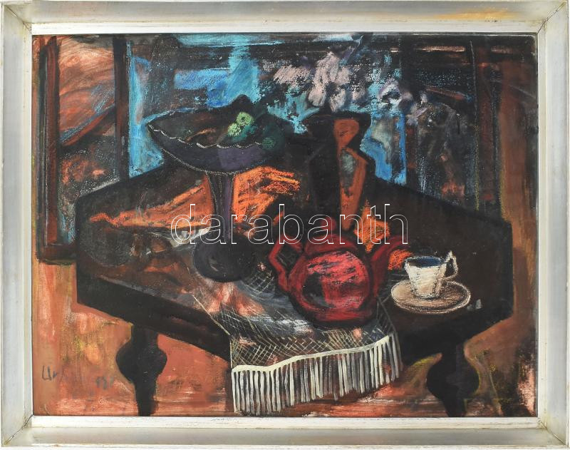 Urbán György (1936-2011): Csendélet. Olaj, vászon, jelezve balra lent.... https://www.darabanth.com/hu/489-Gyorsarveres/489.0/Festmenyek-es-grafikak/Festmenyek-es-grafikak~500001/Urban-Gyorgy-1936-2011-Csendelet-Olaj-vaszon-jelezve-balra-lent-60C39750-cm-Fakeretben~II3335364