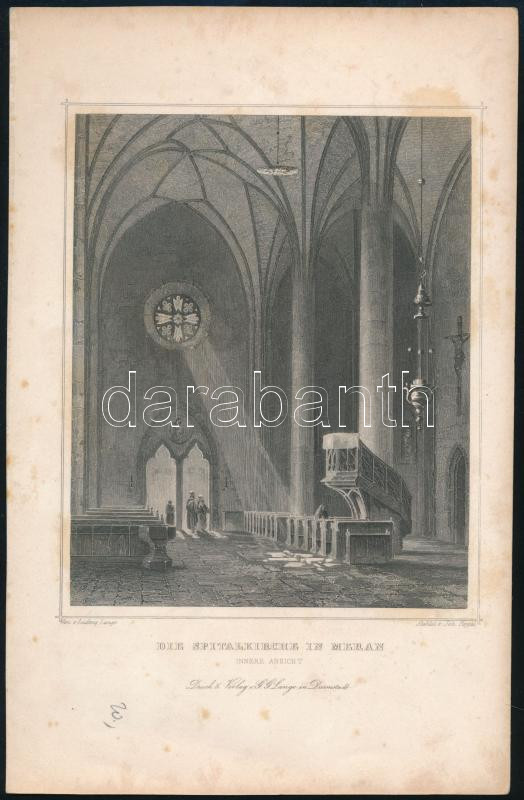 Ludwig Lange (1808-1868), Johann Poppel (1807-1882): Merani templom(Spitalkirche in Meran), acélmetszet, papír, jelzett a metszeten, kissé foltos, 15x12 cm