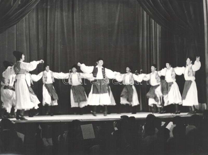cca 1982 Néptáncosok fellépés közben a Táncház mozgalom idejéből, 3 db fotó, hátoldalán jelzett (Rosti Pál Fotoklub, Bartók Béla Művelődési Központ, Dunaújváros), klf. együttesek (Fejér Megyei Népi Együttes, Dunai Vasmű Együttes stb.), 18x24 cm