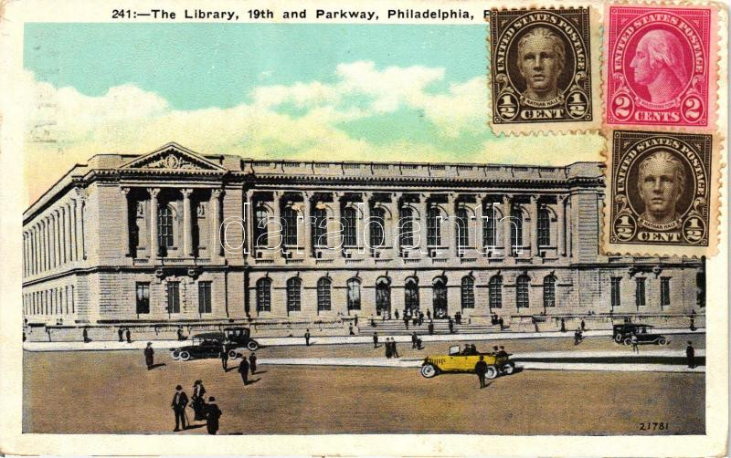 Leírás: Philadelphia, Parkway, library, automobiles