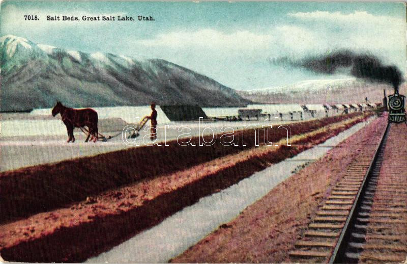 Utah, Great Salt Lake, salt beds, locomotive https://www.darabanth.com/hu/489-Gyorsarveres/489.0/Kepeslapok/Amerikai-Egyesult-Allamok~1500106/Utah-Great-Salt-Lake-salt-beds-locomotive~II1085620