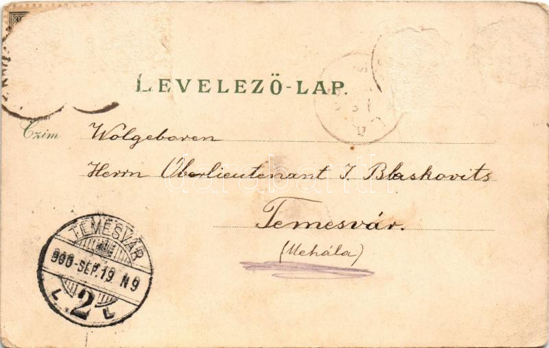 1900 Herkulesfürdő, Baile Herculane; Kurpark, Coroninihöhe, Herkulesplatz, Szapary Bad, Rudolfshof. Kunstanstalt Rosenblatt / a fürdő központja, látkép, tér, Szapáry fürdő, Rezső udvar / spa, bath, sqaure, general view, court. Art Nouveau, floral, litho (Rb)