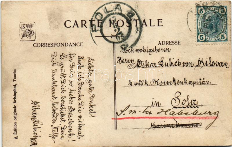 1905 Jeanne d'Arc en sa prison. Salon 1905. s: Rousseau-Decelle / Addressed to K.u.k. Kriegsmarine Korvettenkapitän Oskar Lubich von Milovan at the Marine Casino and forwarded to S.M.S. Habsburg (EK)