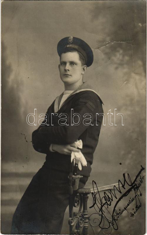 Leírás: 1906 SMS HABSBURG az Osztrák-Magyar Haditengerészet Habsburg-osztályú pre-dreadnought csatahajó matróza / K.u.K. Kriegsmarine Matrose / Austro-Hungarian Navy battleship's mariner. photo (gyűrődés / crease)
