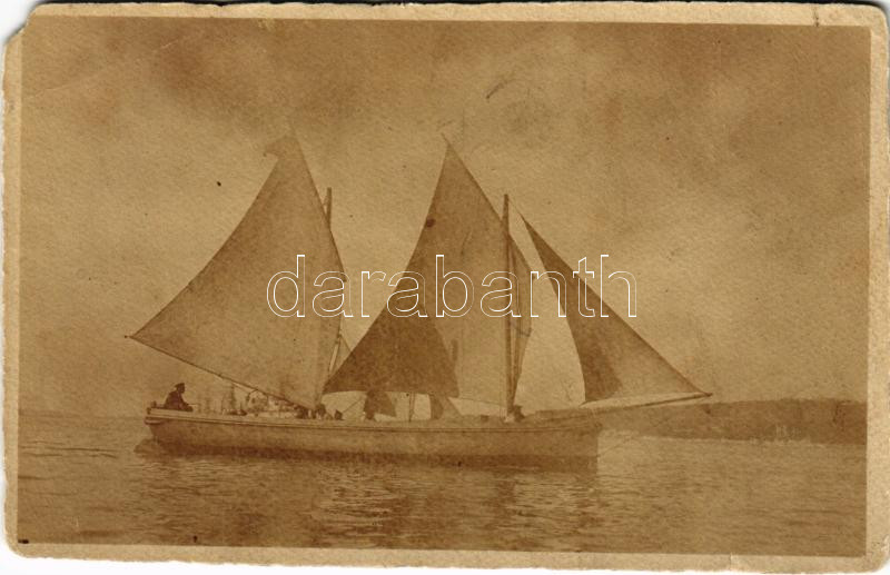 Leírás: 1914 SMS PRINZ EUGEN Osztrák-Magyar Haditengerészet pre-dreadnought csatahajó vitorlázó kis csónakja a pola-i kikötőben / K.u.K. Kriegsmarine / Austro-Hungarian Navy ironclad warship's small sailing boat. photo (EM)