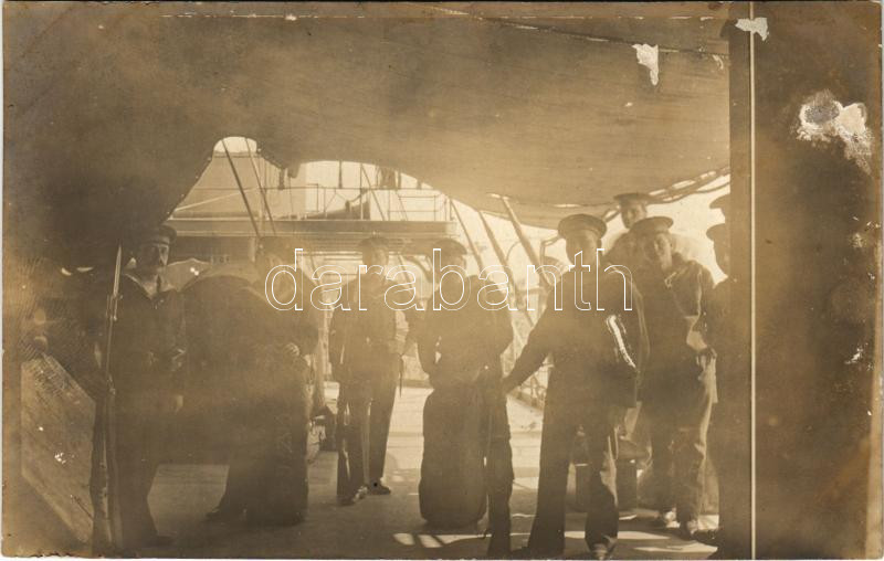 Osztrák-magyar haditengerészet matrózai őrizettbe vett társaikkal / K.u.k. Kriegsmarine Matrosen / Austro-Hungarian Navy mariners arresting two of theirs. photo (fl)