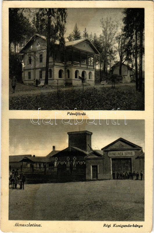 Leírás: 1939 Aknaszlatina, Akna Slatina, Slatinské Doly, Szolotvino, Solotvyno (Máramaros); Pável sósfürdő, régi Kunigunda bánya. Foto Knoll / salt bath, spa, mine (fl)