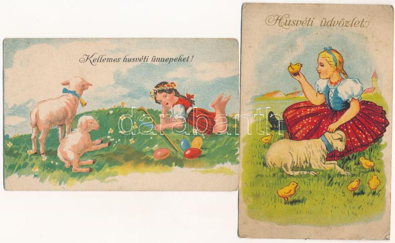 Leírás: 6 db RÉGI húsvéti üdvözlő képeslap vegyes minőségben / 6 pre-1945 Easter greeting postcards in mixed quality