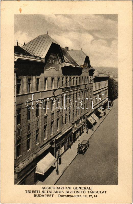 Budapest V. Assicurazioni Generali Triesti Általános Biztosító Társula... https://www.darabanth.com/hu/489-Gyorsarveres/489.0/Kepeslapok/Magyarorszag~1500005/Budapest-V-Assicurazioni-Generali-Triesti-Altalanos-Biztosito-Tarsulat-Dorottya-utca-10-12-14~II3248196