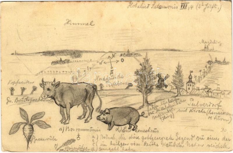 1908 Hand-drawn art postcard with farm scene, windmill, pig and cow (E... https://www.darabanth.com/hu/489-Gyorsarveres/489.0/Kepeslapok/Muveszlapok~1500041/1908-Hand-drawn-art-postcard-with-farm-scene-windmill-pig-and-cow-EK~II2683725