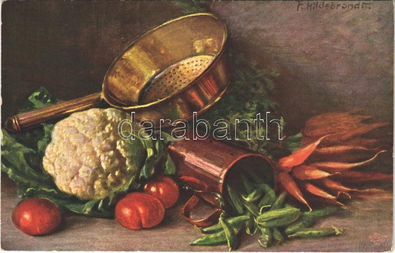 Leírás: Still life art postcard with vegetables from the garden. Wohlgemuth & Lissner "Vom Küchentisch" No. 848. s: Fritz Hildebrandt