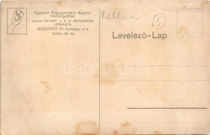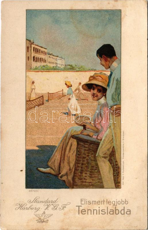 Elismert legjobb Tennislabda (teniszlabda). Standard Harburg V.G.F. Egyesült Ruggyantaárú Gyárak Harburg-Wien ezelőtt Menier - J. N. Reithoffer lerakata Budapest VI. Andrássy út 6. reklám / Best tennis balls. Rubber factory advertisement card. litho (fl)