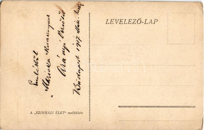 Leírás: 1917 Arányi Dezső magyar operaénekes Richard Wagner Lohengrin című operájában, saját kezű autográf aláírásával. A Színházi Élet melléklete (fa)