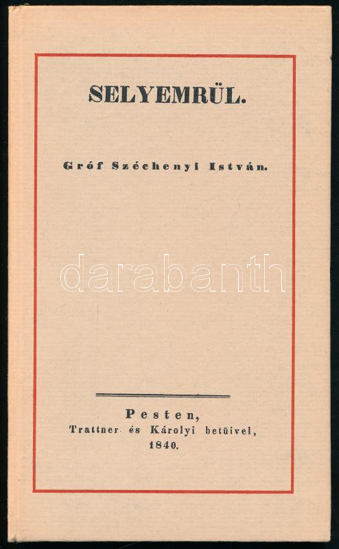Széchényi István: Selyemrül. Bp., 1982, Állami Könyvterjesztő Vállalat... https://www.darabanth.com/hu/489-Gyorsarveres/489.0/Konyvek/Konyvek-Egyeb-ritkasagok~2000028/Szechenyi-Istvan-Selyemrul-Bp-1982-Allami-Konyvterjeszto-Vallalat-A-1840-es-Trattner-K~II2918016