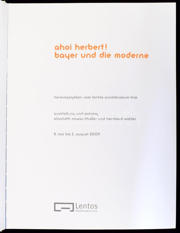 Ahoi Herbert! Bayer und die moderne. Ausstellung und die Katalog. Szerk.: Elisabeth Nowak-Thaller und Bernhard Widder. Linz, 2009, Lentos Kunstmuseum Linz. Német nyelvű nagy alakú kiállítási katalógus, gazdag színes képanyaggal. Kiadói kartonált papírkötés, enyhén sérült kiadói papír védőborítóval.