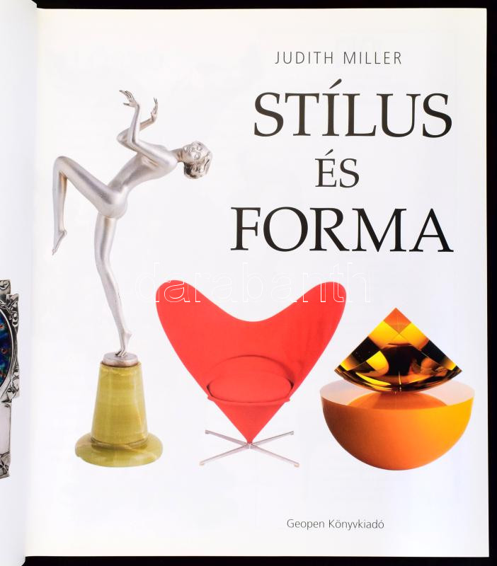 Judith Miller: StÃlus és forma. Az iparművészet képes enciklopédiája. Bp., 2007, Geopen, 432+(8) p. SzÃnes fotókkal és reprodukciókkal gazdagon illusztrálva. Kiadói kartonált papÃrkötés, minimálisan sérült kiadói papÃr védÅ‘borÃtóban.