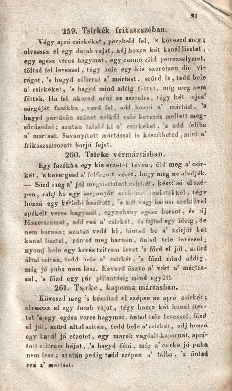 Példányunk első kilenc levele hiányzik; szakácskönyvi része hiánytalan. Czifray István (?-1840 körül) szakácsmester, József nádor főszakácsa. Ízes magyar nyelven írt szakácskönyve először 1816-ban jelent meg, a magyar könyvtörténetben ez volt az első olyan magyar szakácskönyv, amelynek név szerint ismerjük a szerzőjét, és bár első kiadásának címoldalán a szerzőnek még csak monogramja, későbbi kiadásaiban már a mester teljes neve szerepelt. A folyamatosan bővített kötet a XIX. századi gasztronómia meghatározó jelentőségű műve. Példányunk az ötödik kiadásból származik.