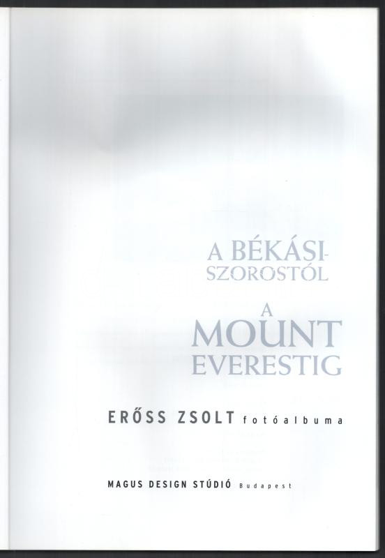 Erőss Zsolt: A Békási-szorostól a Mount Everestig. - - fotóalbuma. Szerk.: Rados Richárd. Bp., 2002, Magus Design Stúdió. Gazdag képanyaggal illusztrálva, a szerző saját felvételeivel. Kiadói papírkötés.