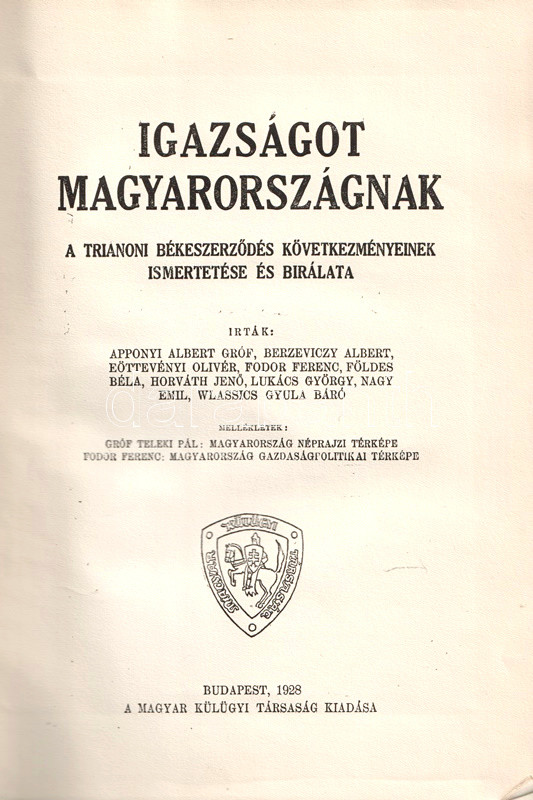 Igazságot Magyarországnak! A trianoni békeszerződés következményeinek ismertetése és bírálata.