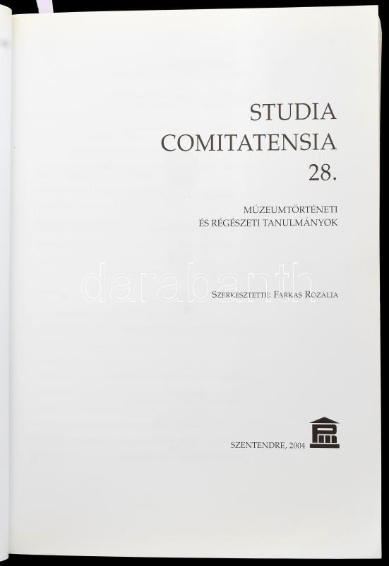 Studia Comitatensia 28. Múzeumtörténeti és régészeti tanulmányok. Szerk.: Farkas Rozália. Szentendre, 2004., Pest Megyei Múzeumok Igazgatósága. Kiadói papÃrkötés, a gerincen kis ütÅ‘déssel.