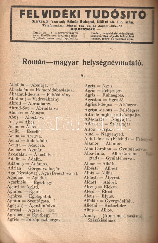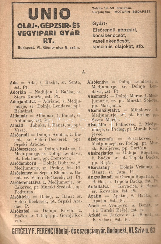 Kötetünket az Angol-Magyar Bank tisztviselői gárdája állította össze, jól felfogott gazdasági érdekből. Részlet az előszóból: "Csonkamagyarország s az utódállamok kereskedelmi és ipari életükben mindinkább szükségét érzik egy olyan kézikönyvnek, mely számol az új államalakulatoknak a postai küldemények kézbesítésé[t illető nehézségeivel]. Nem egy esetben kellett tapasztalnunk ugyanis, hogy fontos közgazdasági érdekeket szolgáló levelek a helytelen címzés következtében nem, vagy csak későn kézbesíttettek, s ebből nemcsak az egyes vállalatokra, hanem az érdekelt országok egész közgazdasági életére is kiható károk származtak. Küzdelmes és anyagi áldozatoktól meg nem riadó vállalkozásra szántuk tehát magunkat akkor, mikor az utódállamok mai helységneveinek összegyűjtésével e kézikönyvet sajtó alá rendeztük.