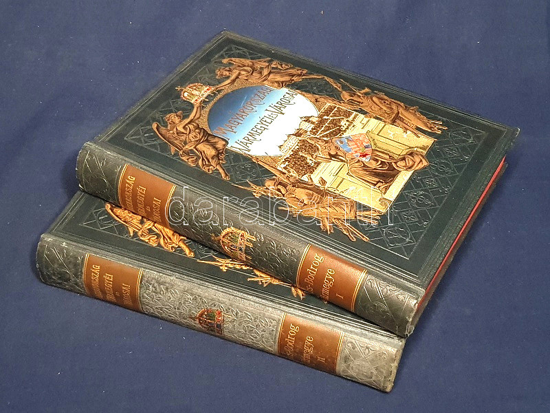 Budapest, (1909). Országos Monografia Társaság (Légrády Testvérek ny.) [6] + VI + 477 + [1] p. + 2 t. (színes) + 1 térkép (színes, kihajtható); [4] + 616 p. + 2 t. (egy színes). Folio. Első kiadás.