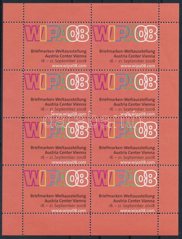 2008 WIPA levélzáró 8-as kisív https://www.darabanth.com/hu/489-Gyorsarveres/489.0/Magyar-filatelia-es-postatortenet/Parafilatelia~500025/2008-WIPA-levelzaro-8-as-kisiv~II3298396