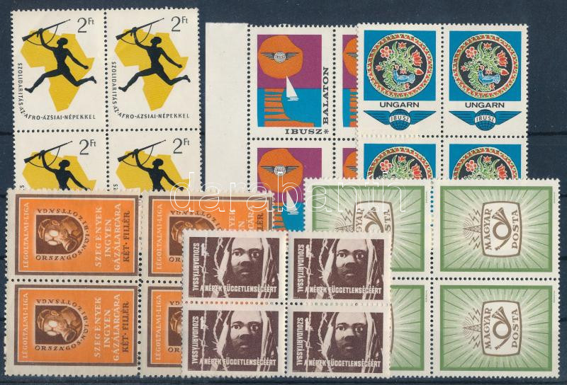 Leírás: 6 klf segélybélyeg és levélzáró négyestömbben