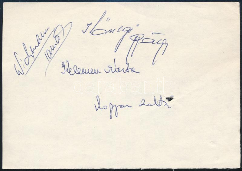 Leírás: 4 magyar sportoló autográf aláírása lapon Wichmann Tamás (1948-2020), Kőszegi György (1950-2001), Magyar Zoltán (1953-) és Kelemen Márta (1954-).