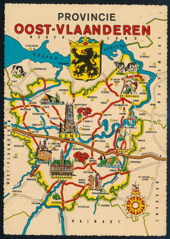 ca 1980 Magyar kajak kenusok aláírása Belgiumból hazaküldött képeslapon Petrikovics, Ring Rudolf, Veréb, Galambos, Kunóczi, stb, / Autograph signatures of Hungarian kayak-kenu team members