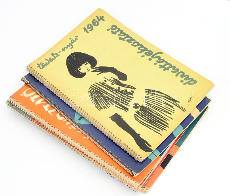 1964-1967 Divattájékoztató, 6 db, fekete-fehér és színes képekkel, ábrákkal. Spirálfűzéses papírkötésben, változó állapotban, az egyik hiányzó hátsó borítóval.