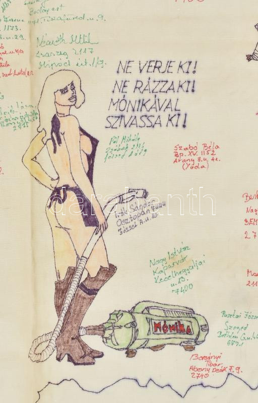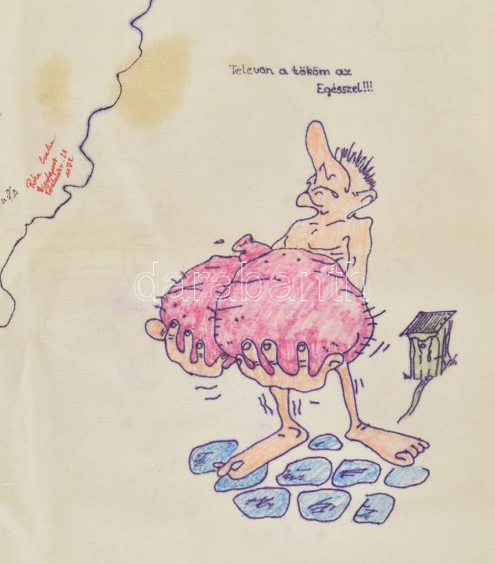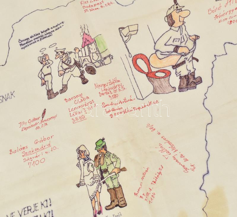 1989 Kaposvár, katona humoros-erotikus emlékrajza, vegyes technika, vá... https://www.darabanth.com/hu/489-Gyorsarveres/489.0/Mutargy-papirregiseg-egyeb/Militaria~1000039/1989-Kaposvar-katona-humoros-erotikus-emlekrajza-vegyes-technika-vaszon-szamos-alairassal~II3088893