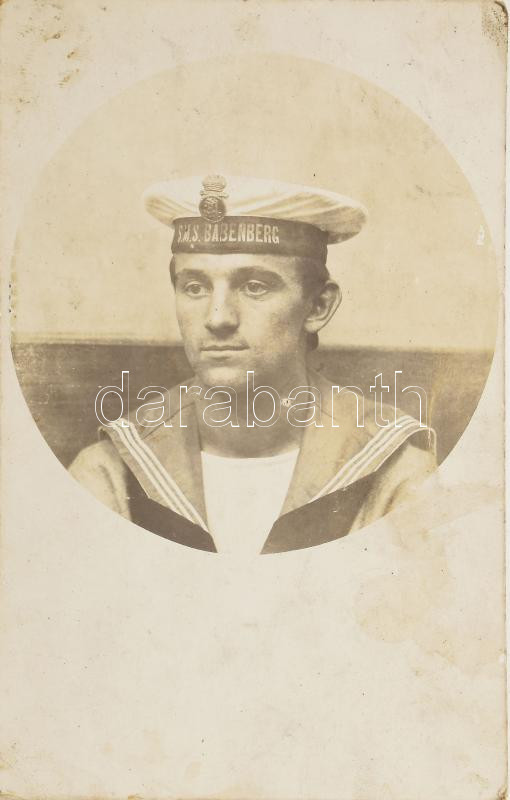 cca 1916 Az S.M.S. Babenberg osztrák-magyar Habsburg-osztályú pre-dreadnought csatahajó (Linienschiff) matróza fotólap / Navy sailor of the S.M.S. Babenberg