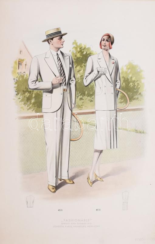 1931 Fashionable. Spring and Summer. London - Paris - Bruxelles - New York, 10 t. Kiadói papír mappa, szakadt mappával, a lapok szélein: Vörös Sándor hódmezővásárhelyi uri szabó bélyegzéseivel. 45x30 cm