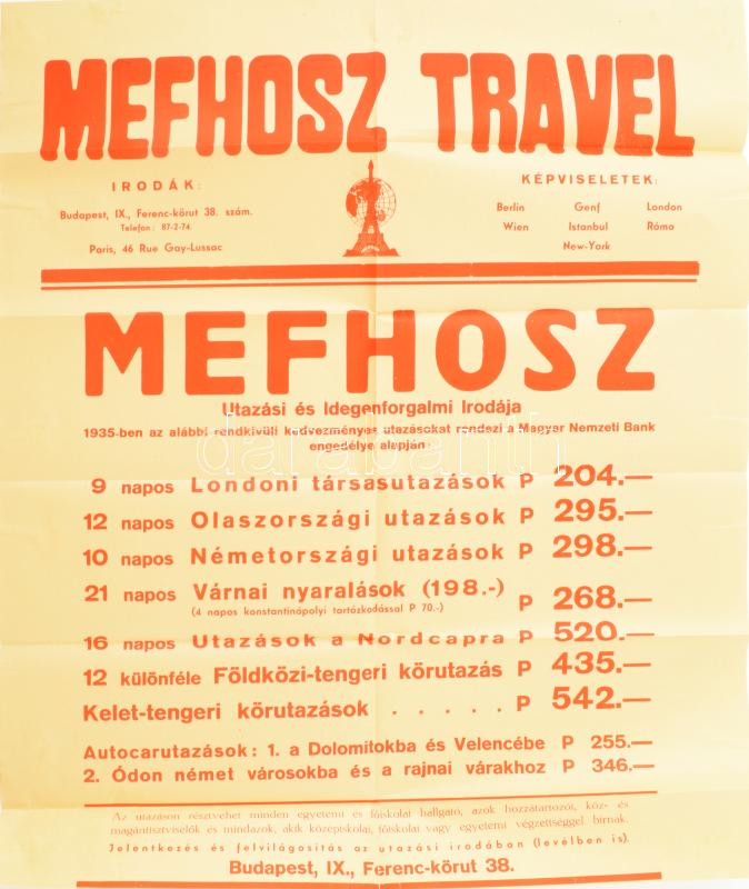 cca 1930 Mefhosz Travel utazási iroda plakát 48x60 cm Hajtva https://www.darabanth.com/hu/489-Gyorsarveres/489.0/Mutargy-papirregiseg-egyeb/Plakat~1000016/cca-1930-Mefhosz-Travel-utazasi-iroda-plakat-48x60-cm-Hajtva~II3153605