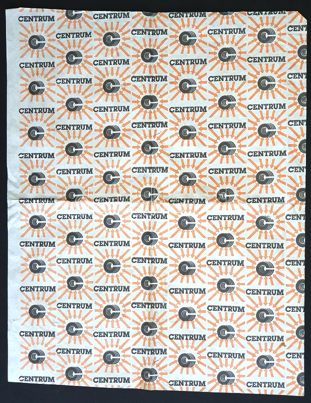 Leírás: Cca 1970-1980. Centrum [Áruházak] feliratos retro csomagolópapír, mérete: 620x500 mm. Szélein kisebb sérülések.