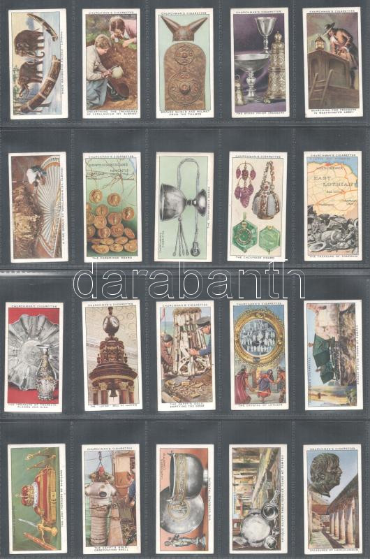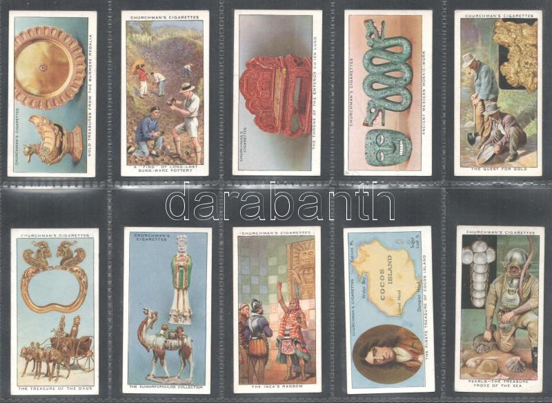 Churchman's Cigarettes brit cigaretta-gyűjtőkártyák, 50 db-os komplett sorozat ("Kincsesbánya"), albumlapokon / British cigarette cards, complete series of 50 ("Treasure Trove"), in album sheets